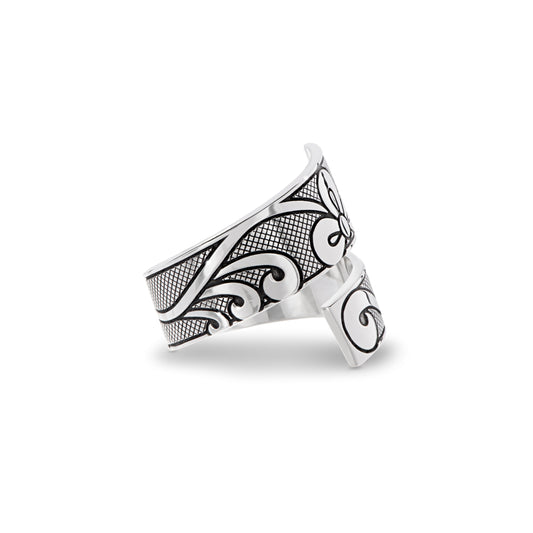 Floral Beadwork Wrap Ring - Silver