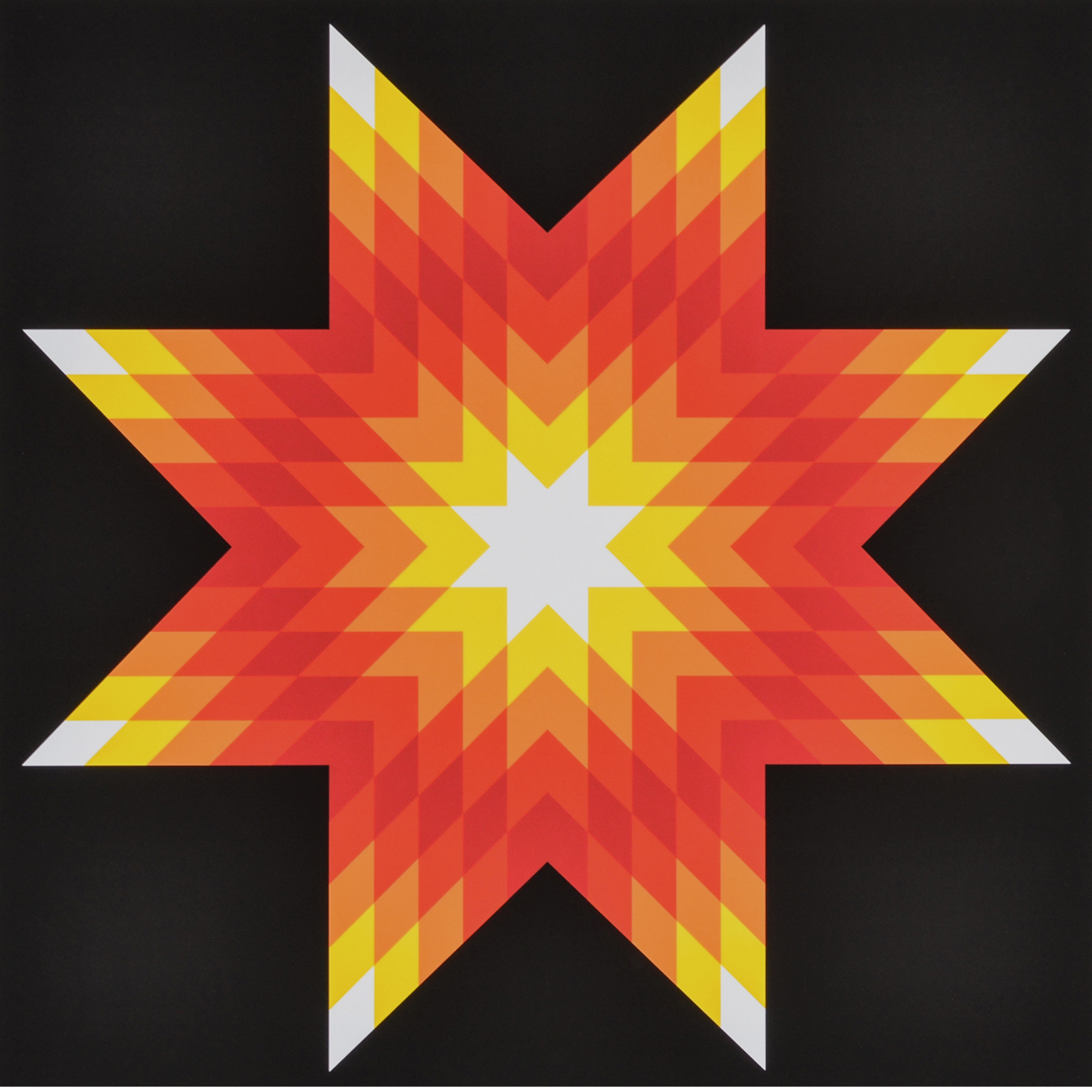The “Sunrise” star blanket is painted with the colours of the sunrise: Red, Orange, Yellow and White. This represents our babies, our children and our youth. They are the newest members of our communities and show us the new ways of living and being. They have the clearest vision and a youthful energy which shapes our futures. They teach us the ways in which we need to change our cultures for the better.