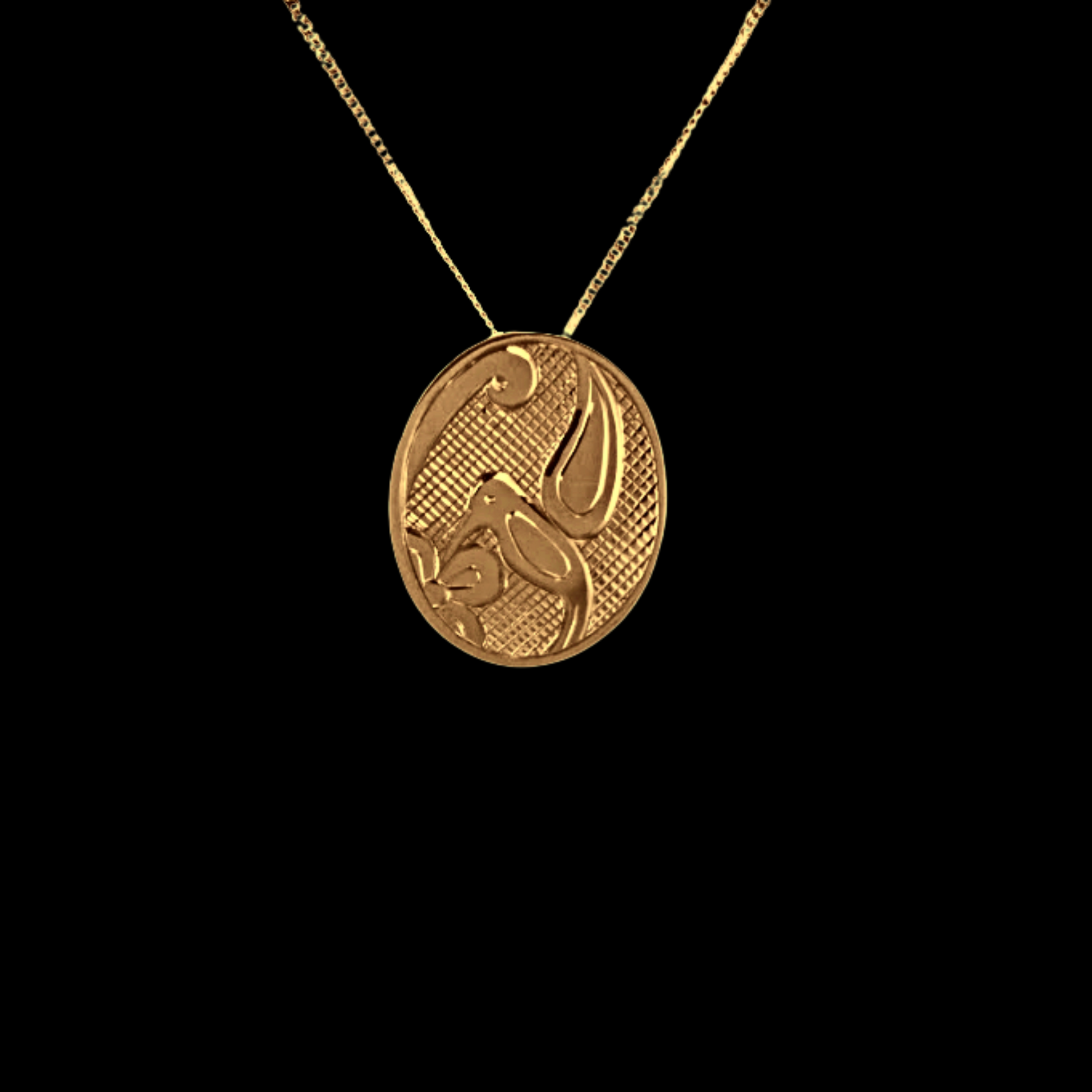 "Joyful Messenger" Hand Engraved Gold Necklace
