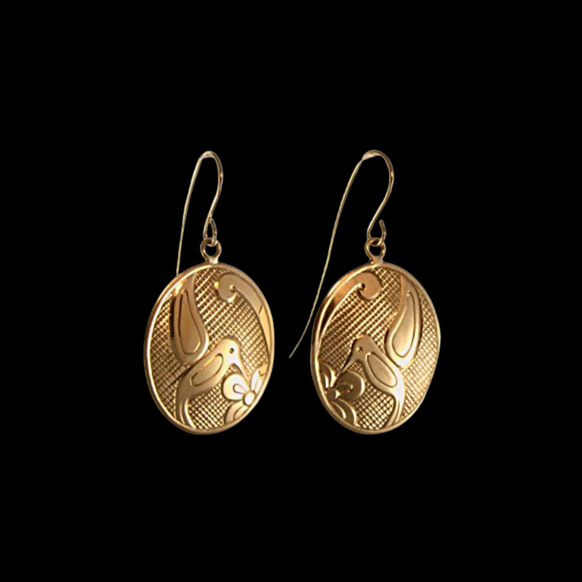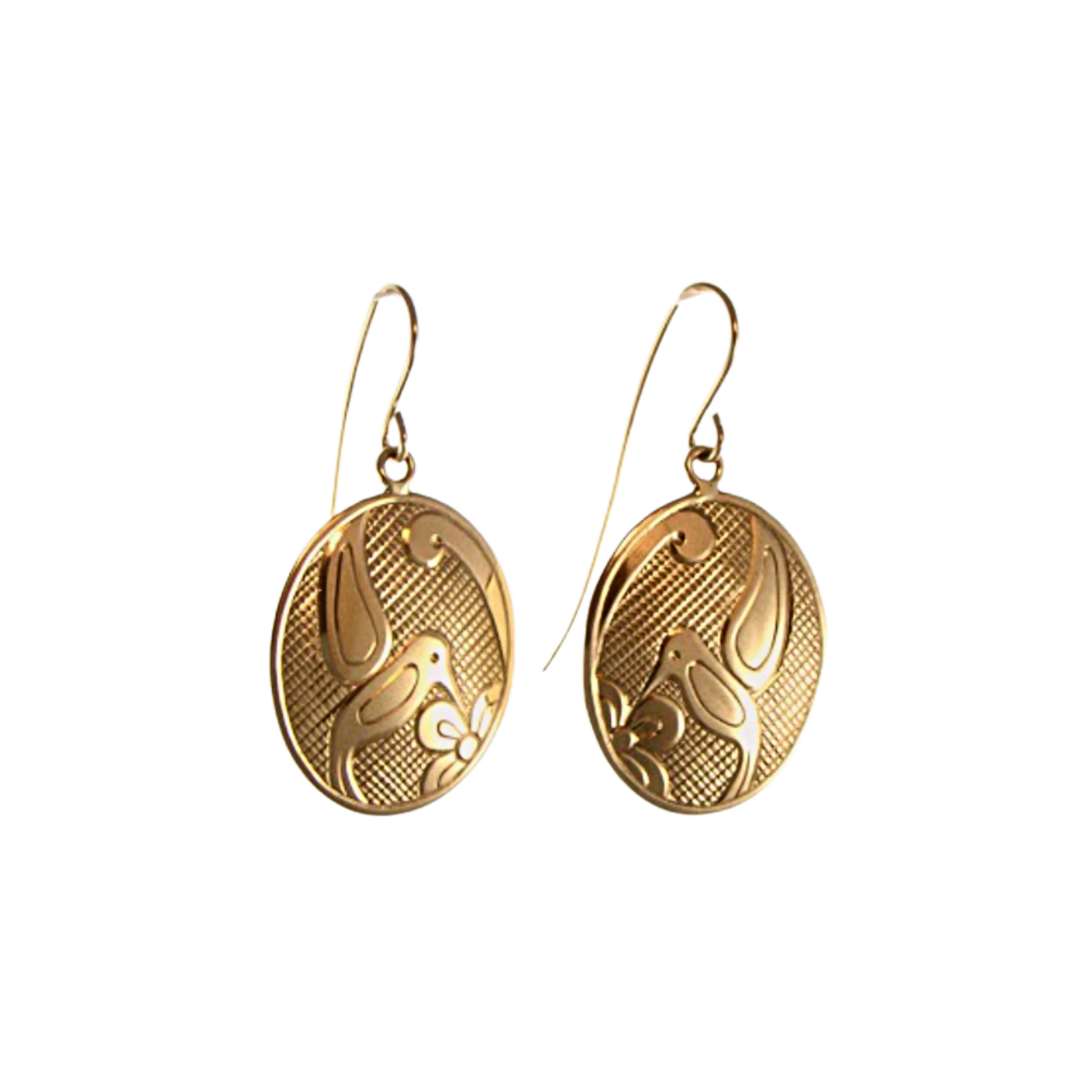 "Joyful Messenger" Hand Engraved Gold Earrings